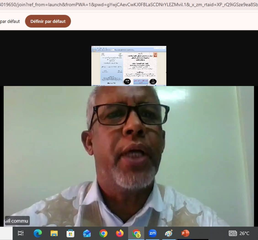 وعضوية د. كمال الساكري: عضو مخبر الظاهرة الدينية – كلية الآداب والعلوم الإنسانية – جامعة منوبة -تونس. ود. اسماء بلعسكري أستاذة العلوم الطبيعية بكلية العلوم – جامعة وهران – الجزائر. والدكتور الحسين محمد الامين القاسم استاذ القانون بجامعة نواكشوط -موريتانيا.